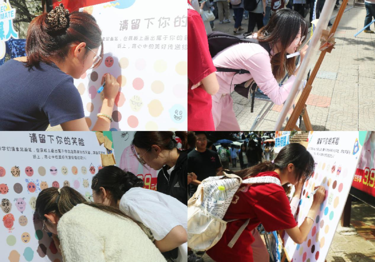 9月18日,在学院院平台开展“定格温暖,传递治愈”主题心理互动活动。同学们手持彩笔,在卡片上勾勒出各具特色的笑脸——有的灵动活泼,有的温柔治愈,整面墙的笑脸与寄语汇成一股暖流,为来往的师生带来深深的心灵慰藉。