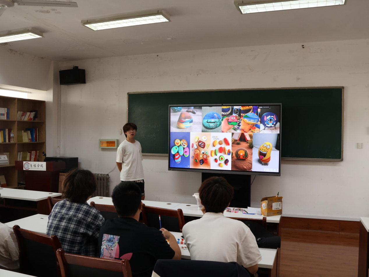 9月20日,在学院310会议室迎来“石间绘心,艺语疗愈”艺术疗愈体验活动。在舒缓的音乐中,同学们拿起画笔,在一个个鹅卵石上描绘出各式各样的图案,并进行交流分享。这不仅为同学们提供了一个独特的自我表达渠道,更完成了一次深刻的内在探索与情感联结。