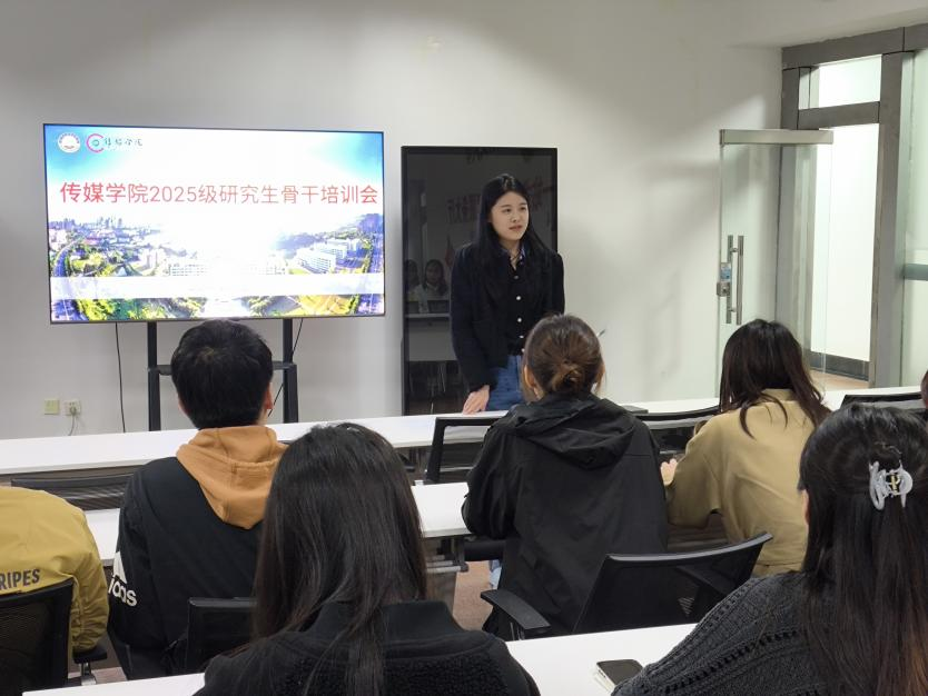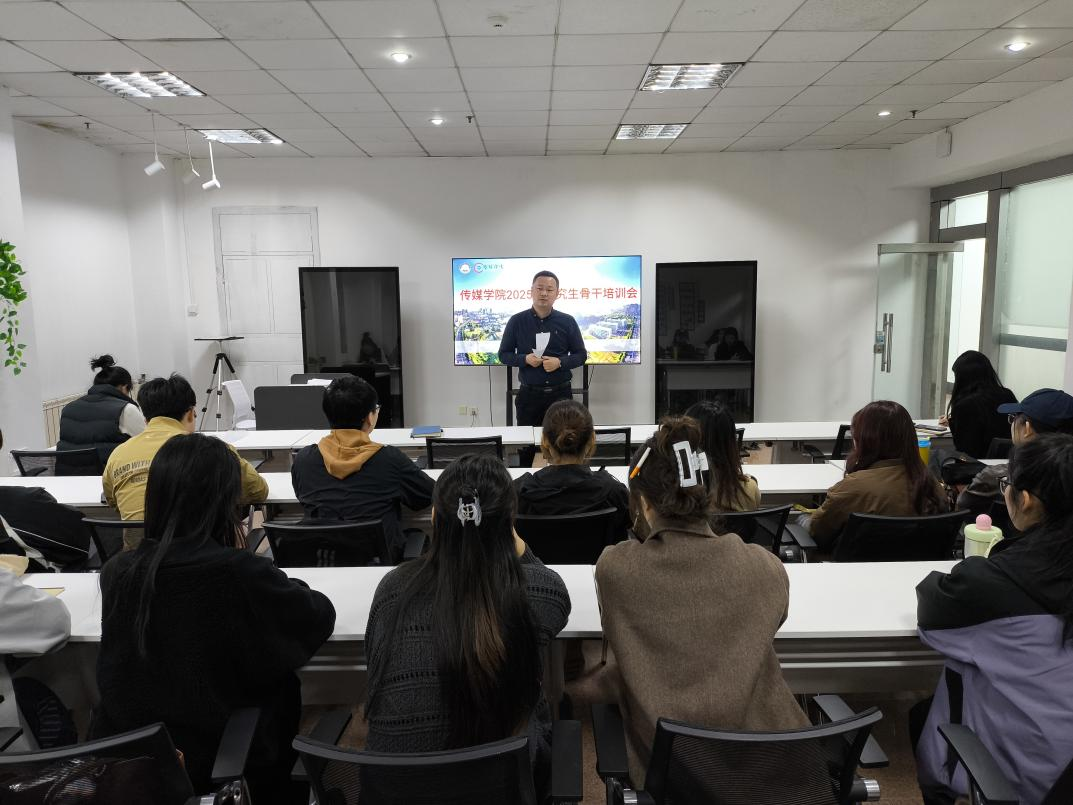 2025级研究生骨干培训会在“一站式”学生社区举行。学院党委副书记兼副院长刘海波、团委副书记兼学工办副主任金莹莹、24级出版专业团支书刘晓阳以及2025级全体研究生班委参加会议。