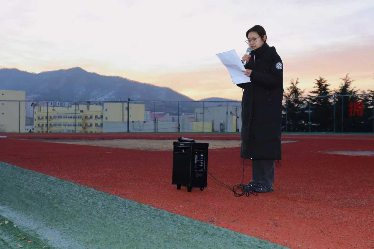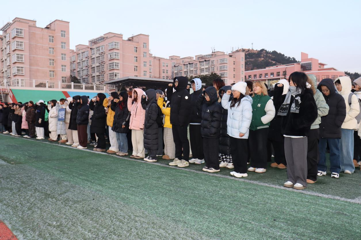 清晨6:30,天色微明,寒风凛冽,同学们准时集合,现场秩序井然,氛围庄重。7:00,主持人宣布仪式正式开始,国旗护卫队迈着铿锵有力的正步护送国旗入场,身姿挺拔,目光坚定,展现出时代新人的昂扬姿态。伴随着雄壮的《义勇军进行曲》,五星红旗冉冉升起,全体人员肃立行注目礼。朝阳下,国旗迎风招展;晨光里,目光坚定炽热,这一刻,爱国之情在每个人心中激荡,民族自豪感油然而生。