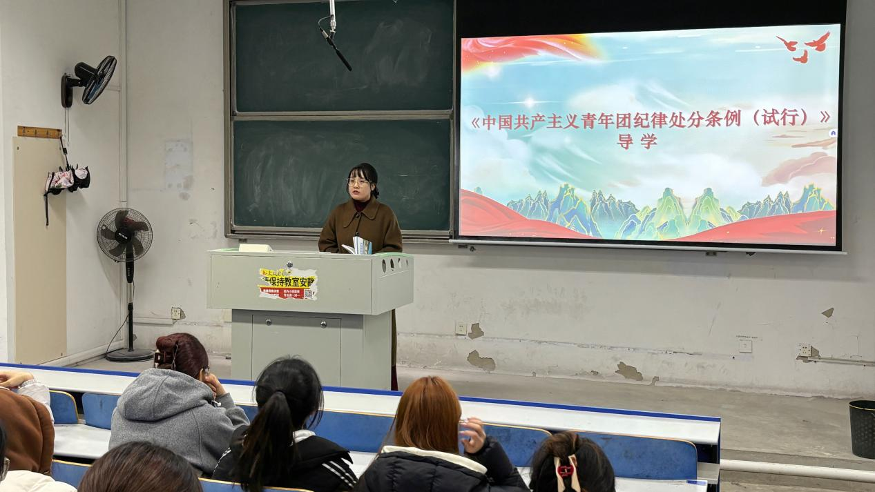 学院团委副书记兼学工办副主任张鸣围绕《严守团纪:锤炼先进品格与青春担当》展开讲解。她结合典型案例与工作实际,阐释了团的纪律建设的重要性,号召入团积极分子自觉强化组织观念、严守团内规矩,在学习和生活中发挥先锋模范作用,以实际行动展现入青年学生的先进性和纯洁性。
